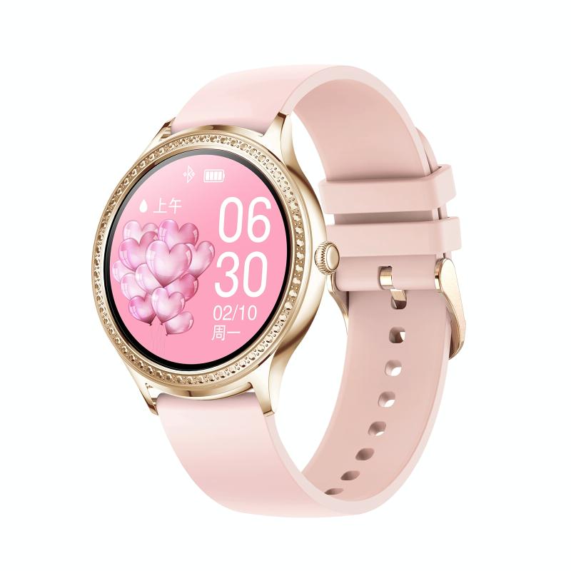 AK35 1.32" IPS Έγχρωμο Smart Watch, Παρακολούθηση Ύπνου/Οξυγόνου αίματος (Χρυσό Ροζ Silicone Watch Band)