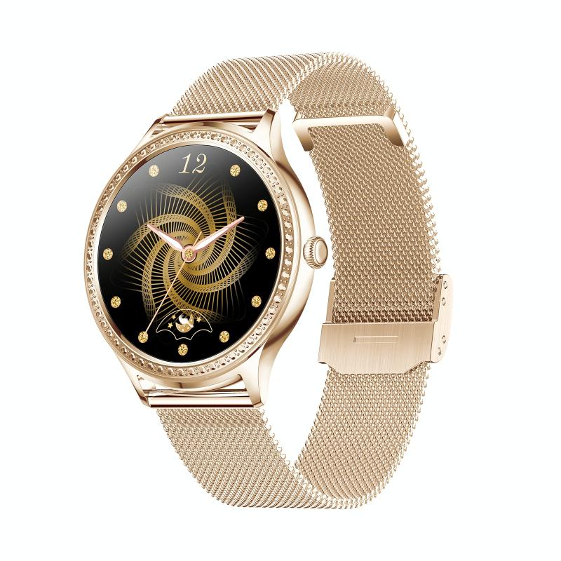 AK35 1.32" IPS Έγχρωμο Smart Watch, Παρακολούθηση Ύπνου/Οξυγόνου αίματος (Χρυσό Steel Watch Band)