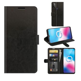 Για Alcatel 1S 2021/3L 2021 R64 υφή ενιαία οριζόντια Flip προστατευτική θήκη με υποδοχή & υποδοχές για κάρτες & πορτοφόλι & πλαίσιο φωτογραφιών (μαύρο)