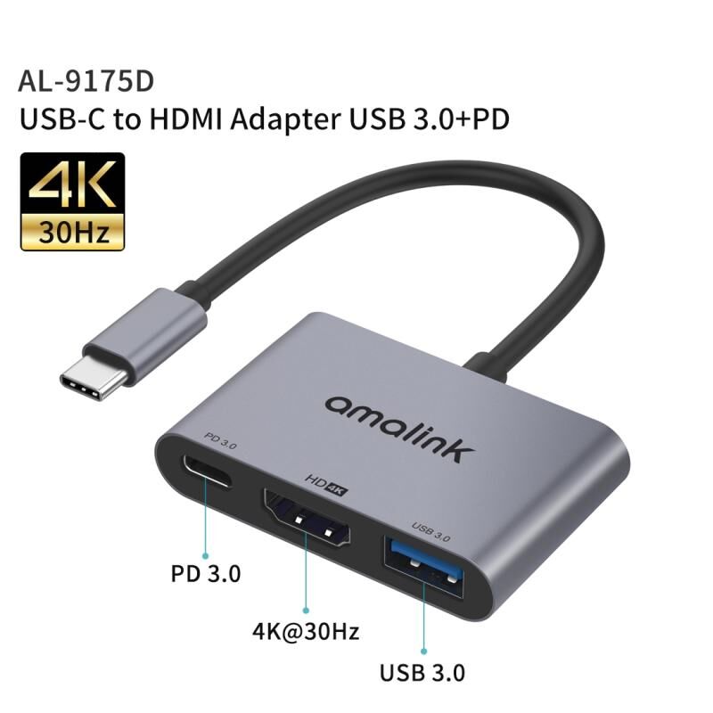 Προσαρμογέας amalink 9175D Type-C / USB-C σε HDMI + USB 3.0 + PD HUB (Γκρι) (amalink)