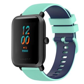 For Amazfit BIP 20mm Checkered Two-Color Silicone Watch Band(Teal+Blue)