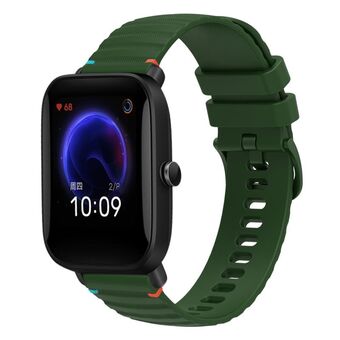 For Amazfit Pop Wavy Dotted Stitched 20mm Silicone Watch Band(Army Green)