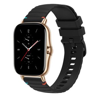 For Amazfit GTS 2 Wavy Dotted Stitched 20mm Silicone Watch Band(Black)