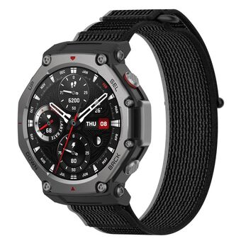 For Amazfit T-Rex 3 Two Tone Nylon Hook and Loop Fastener Watch Band(Black Gray)