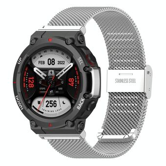 For Huami Amazfit T-Rex 2 Snap-fit Stainless Steel Mesh Watch Band(Silver)
