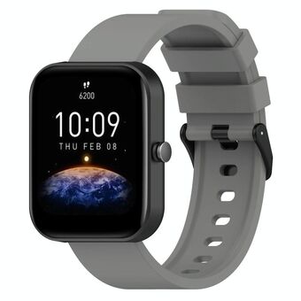 For Amazfit Bip 3 20mm Step Silicone Strap Stainless Steel Black Buckle(Grey)