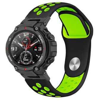 For Amazfit T-Rex 2 Two-color Holes Reverse Buckle Silicone Watch Band(Black Green)