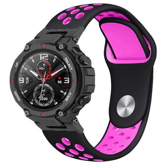 For Amazfit T-Rex 2 Two-color Holes Reverse Buckle Silicone Watch Band(Black Pink)