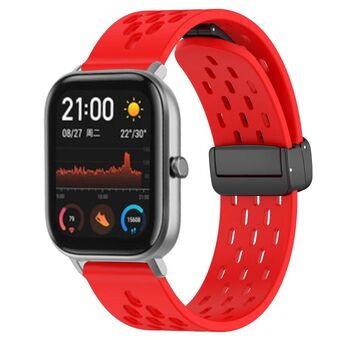 Για Amazfit GTS λουρί σιλικόνης ρολογιού με μαγνητικό κούμπωμα και αναδιπλούμενο μηχανισμό (Βυσσινί)