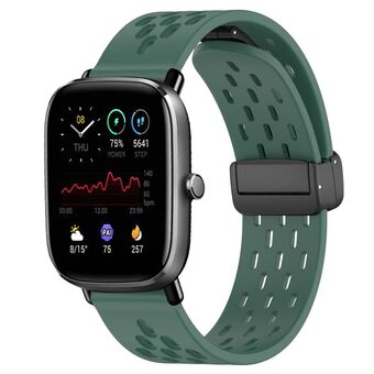 For Amazfit GTS 4 Mini 20mm Folding Magnetic Clasp Silicone Watch Band(Dark Green)