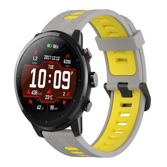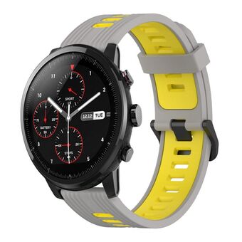 Για Amazfit GTR 47mm λουρί ρολογιού σιλικόνης κάθετης διάταξης διχρωμίας 22mm (Γκρι+Κίτρινο)