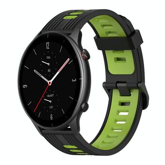 For Amazfit GTR 2e 22mm Vertical Pattern Two-Color Silicone Watch Band(Black+Green)