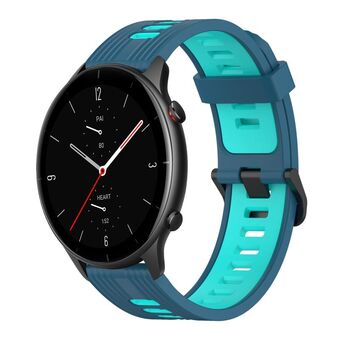 For Amazfit GTR 2e 22mm Vertical Pattern Two-Color Silicone Watch Band(Blue+Water Duck)