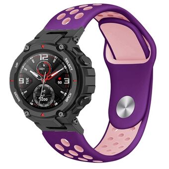 For Amazfit T-Rex 2 Two-color Holes Reverse Buckle Silicone Watch Band(Purple Pink)