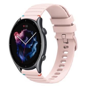 For Amazfit Watch Sport 3 Wavy Dotted Stitched 22mm Silicone Watch Band(Rose Pink)