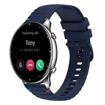 For Amazfit Watch GTR 2 Wavy Dotted Stitched 22mm Silicone Watch Band(Navy Blue)