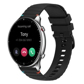 For Amazfit Watch GTR 2 Wavy Dotted Stitched 22mm Silicone Watch Band(Black)