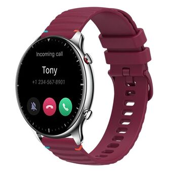 For Amazfit Watch GTR 2 Wavy Dotted Stitched 22mm Silicone Watch Band(Wine Red)