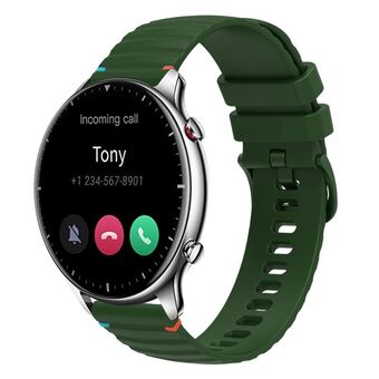 For Amazfit Watch GTR 2 Wavy Dotted Stitched 22mm Silicone Watch Band(Army Green)