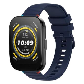 For Amazfit Watch Bip 5 Wavy Dotted Stitched 22mm Silicone Watch Band(Navy Blue)