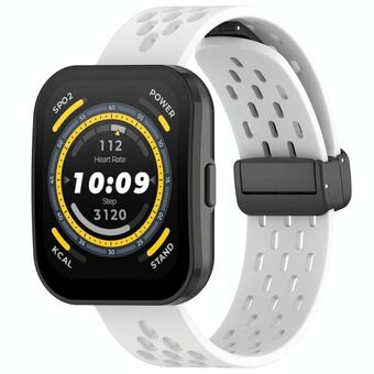 For Amazfit Bip 5 Folding Magnetic Clasp Silicone Watch Band(White)