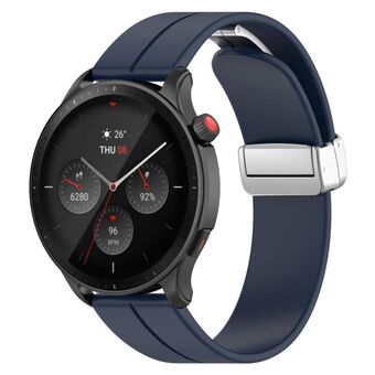 For Amazfit GTR 4 Magnetic Fold Clasp Silver Buckle Silicone Watch Band(Midnight Blue)
