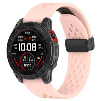 For Garmin Enduro 2 / Enduro Quick Release Holes Magnetic Buckle Silicone Watch Band(Pink)