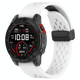 For Garmin Fenix 6X Sapphire GPS Quick Release Holes Magnetic Buckle Silicone Watch Band(White)
