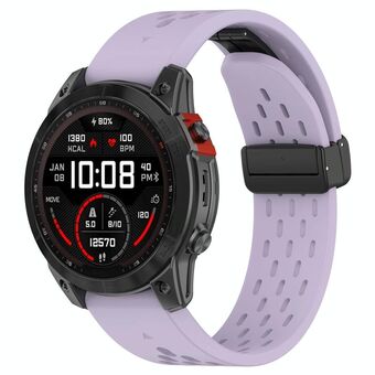 For Garmin Fenix 7X Pro Quick Release Holes Magnetic Buckle Silicone Watch Band(Purple)
