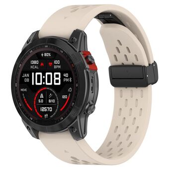 For Garmin Fenix 7X Pro Quick Release Holes Magnetic Buckle Silicone Watch Band(Starlight Color)