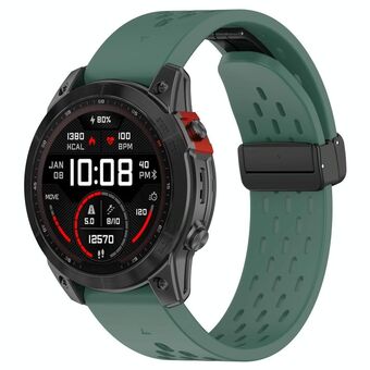For Garmin Fenix 7X Pro Quick Release Holes Magnetic Buckle Silicone Watch Band(Dark Green)