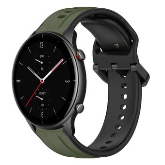 For Amazfit GTR 2e 22mm Convex Loop Two-Color Silicone Watch Band(Olive Green + Black)