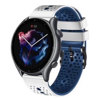 Για Amazfit 3 22 χιλιοστά διάτρητη ζώνη ρολογιού σιλικόνης δύο χρωμάτων (λευκό + μπλε)