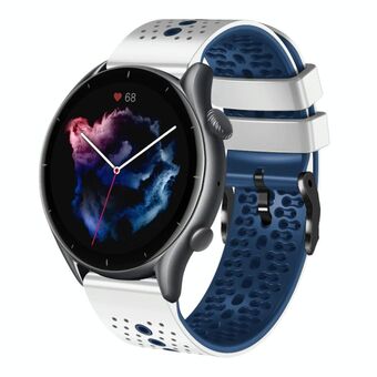 Για Amazfit GTR 3 22 χιλιοστά διάτρητη ζώνη ρολογιού σιλικόνης δύο χρωμάτων (λευκό + μπλε)