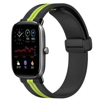 For Amazfit GTS 2 Mini 20mm Folding Magnetic Clasp Silicone Watch Band(Black+Lime Green)