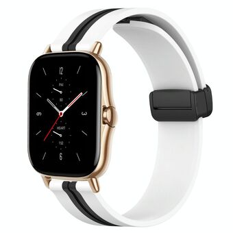 For Amazfit GTS 2 20mm Folding Magnetic Clasp Silicone Watch Band(White+Black)