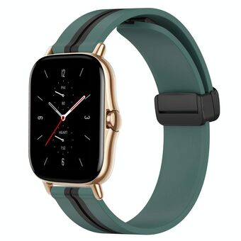 For Amazfit GTS 2 20mm Folding Magnetic Clasp Silicone Watch Band(Olive Green + Black)