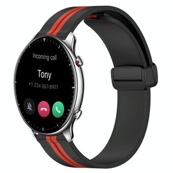 For Amazfit GTR 2 22mm Folding Magnetic Clasp Silicone Watch Band(Red+Black)