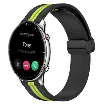For Amazfit GTR 2 22mm Folding Magnetic Clasp Silicone Watch Band(Black+Lime Green)