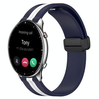 For Amazfit GTR 2 22mm Folding Magnetic Clasp Silicone Watch Band(Midnight Blue + White)