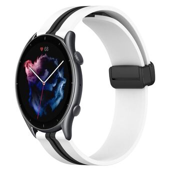 For Amazfit 3 22mm Folding Magnetic Clasp Silicone Watch Band(White+Black)