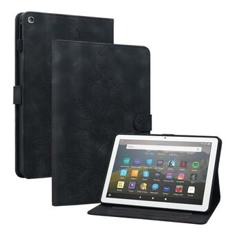Για Amazon Fire HD10 2019/2017 Lily ανάγλυφη δερμάτινη θήκη για έξυπνο tablet (μαύρο)