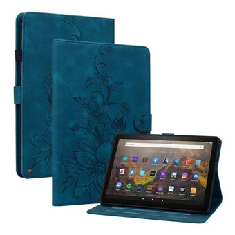 Για Amazon Fire HD10 / HD10 Plus 2021 Lily ανάγλυφη δερμάτινη θήκη για έξυπνο tablet (σκούρο μπλε)