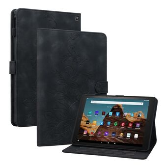 Για Amazon Fire HD10 2023 Lily ανάγλυφη δερμάτινη θήκη tablet (μαύρο)