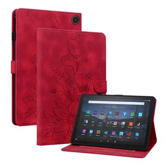 Για το Amazon Fire HD8 2020/2022 Lily ανάγλυφη δερμάτινη θήκη tablet (κόκκινο)
