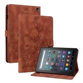 Για Amazon Fire HD8 2020/2022 Lily ανάγλυφη δερμάτινη θήκη tablet (καφέ)