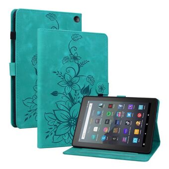 Για το Amazon Fire HD8 2020/2022 Lily ανάγλυφη δερμάτινη θήκη tablet (μωβ)