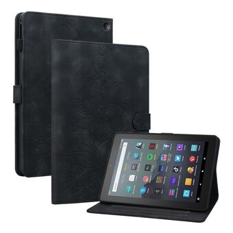 Για Amazon Fire HD8 2020/2022 Lily ανάγλυφη δερμάτινη θήκη tablet (μαύρο)