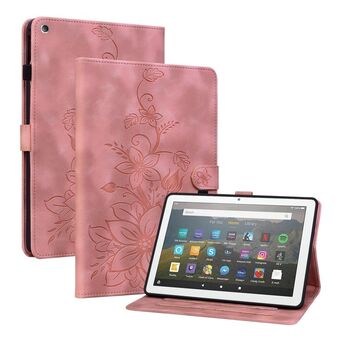 Για το Amazon Fire HD10 2023 Lily ανάγλυφη δερμάτινη θήκη tablet (ροζ)