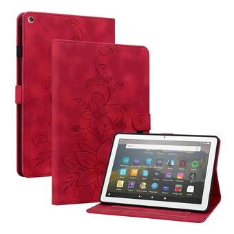 Για το Amazon Fire HD10 2023 Lily ανάγλυφη δερμάτινη θήκη tablet (κόκκινο)